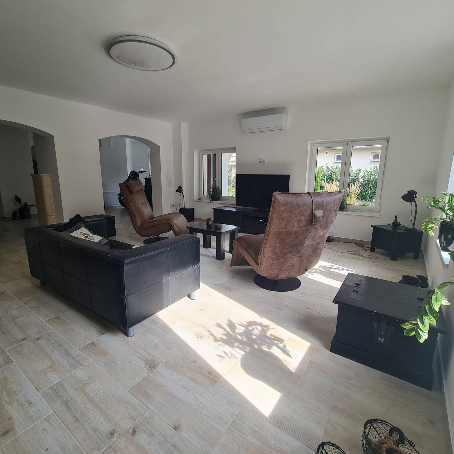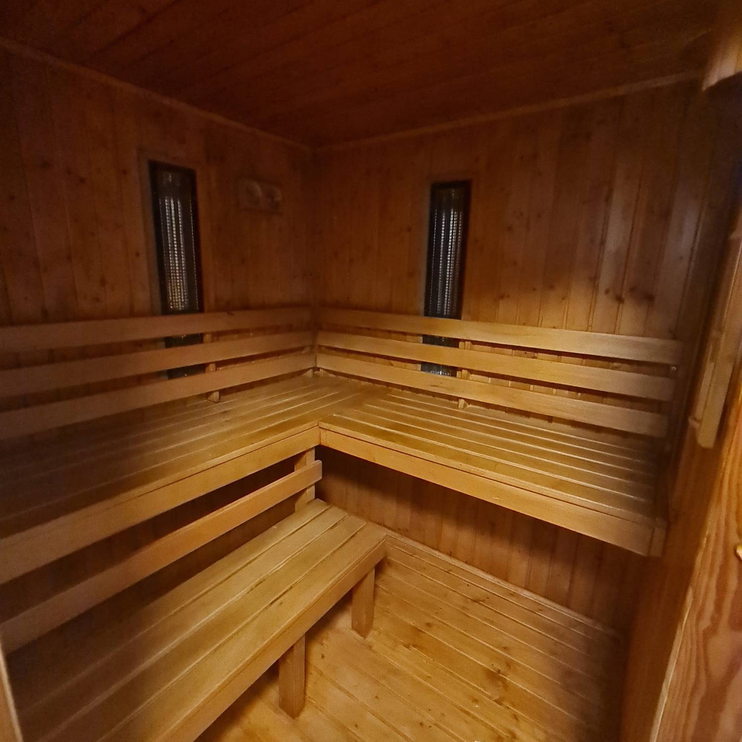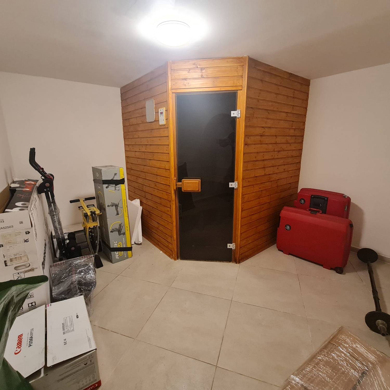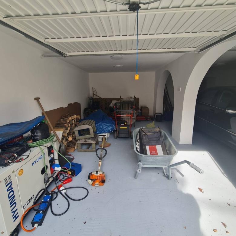 - dubbele garage, technische ruimte, fitnessruimte met sauna en een soort van ” mancave “