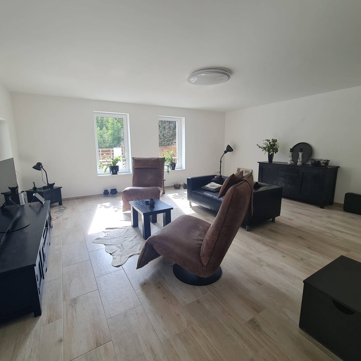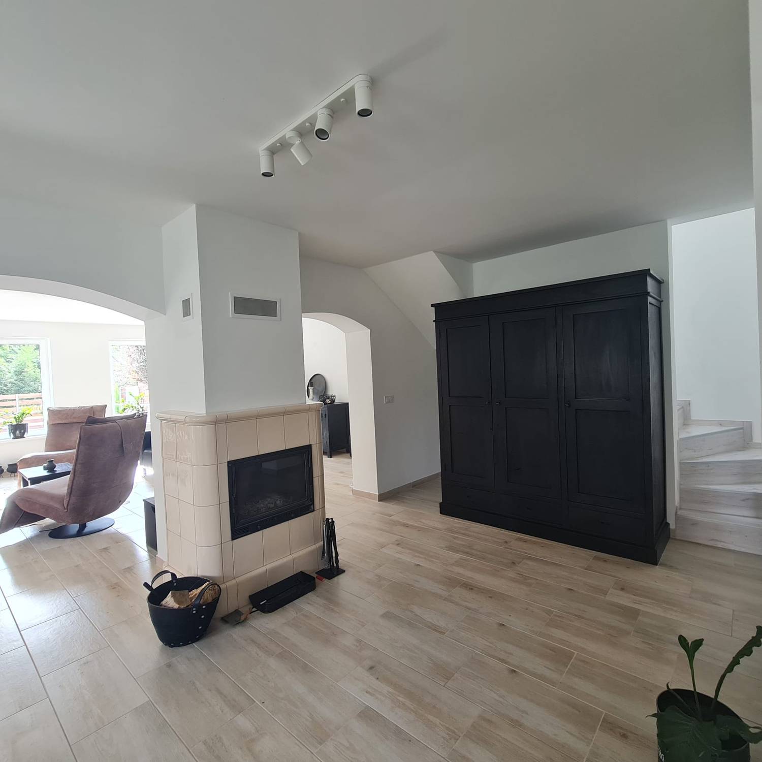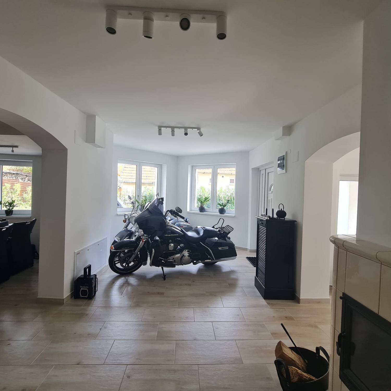 - dubbele garage, technische ruimte, fitnessruimte met sauna en een soort van ” mancave “